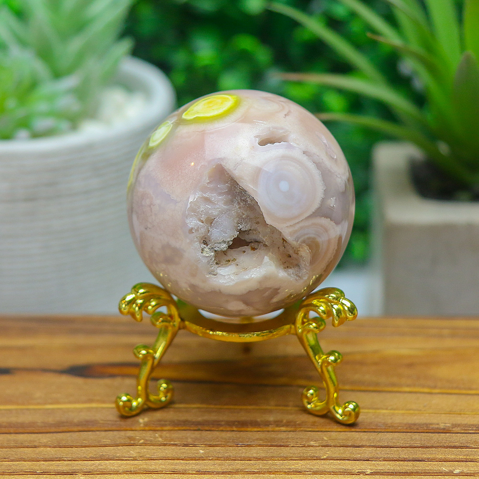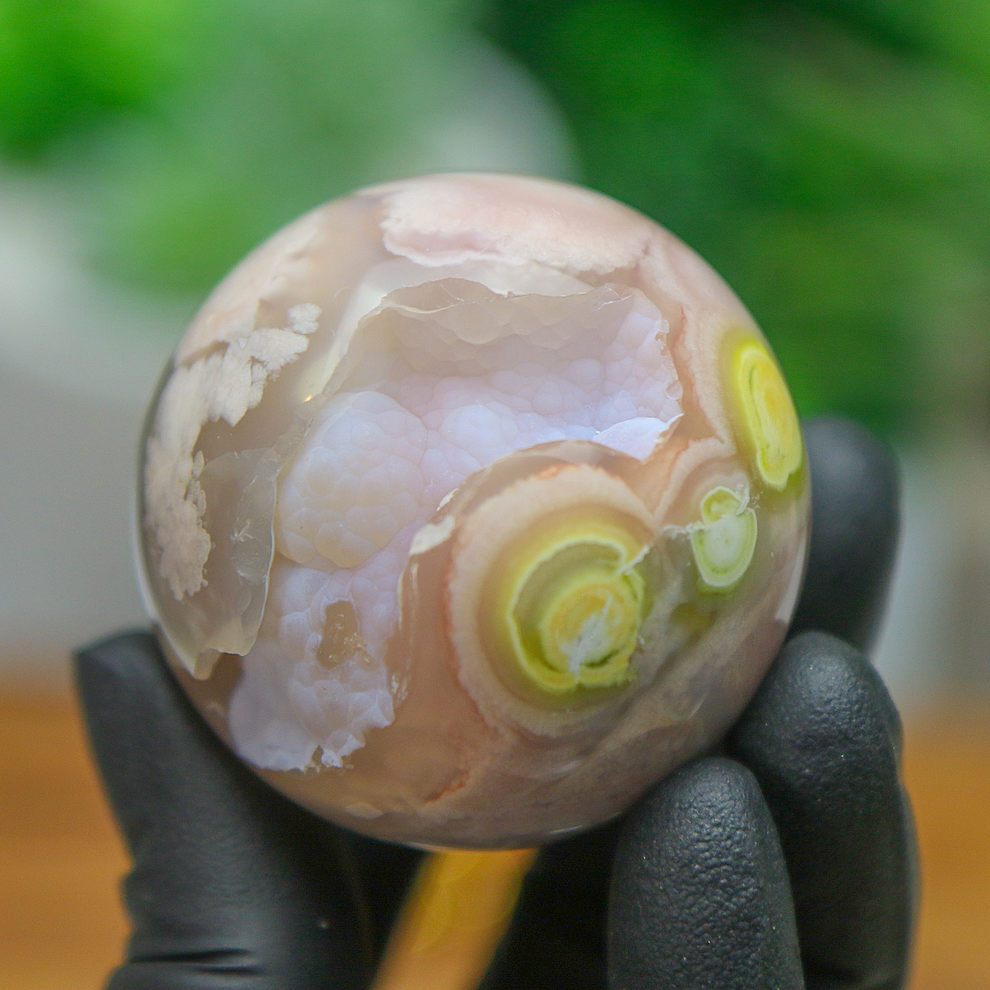 • One-of-a-Kind Piece: Each sphere is completely unique, with its own natural banding, druzy formations, and color variations.