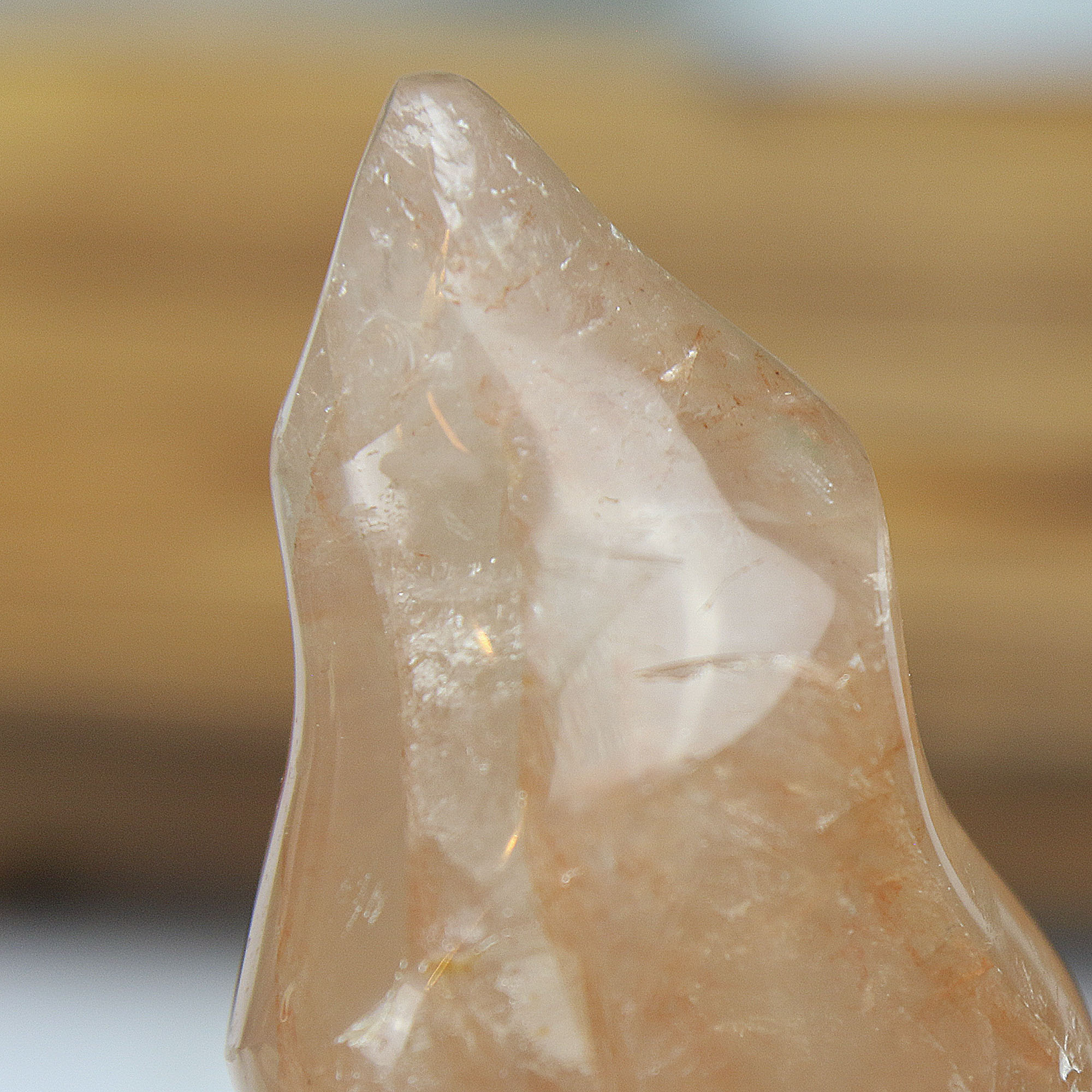 • Dynamic Color Play: The combination of transparent quartz and iron-rich inclusions creates depth, movement, and a glowing, flame-like effect.