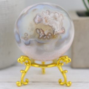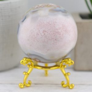 Unveil the enchanting beauty and transformative energy of this Flower Agate Sphere with a Pink Amethyst Sugar Druzy Geode. This magnificent gemstone sphere is a captivating fusion of Flower Agate’s nurturing properties and the serene power of Amethyst, perfect for those seeking growth, balance, and spiritual harmony.