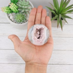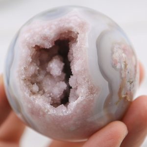 Invite the nurturing and harmonizing energy of this Flower Agate Sphere with Pink Amethyst Sugar Druzy Geode into your life. Whether for its exquisite beauty or its profound properties, this sphere is a perfect addition to your crystal collection and a powerful companion on your journey to emotional and spiritual growth.