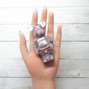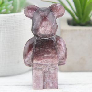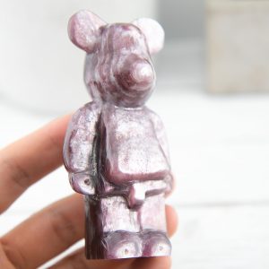 Hand-carved with meticulous attention to detail, each Gem Lepidolite Bearbrick Carving is a testament to the Earth’s artistry. The rich purple hues and shimmering mica flecks of Lepidolite create a mesmerizing display that captures the eye and enchants the senses. This carving effortlessly combines the gentle energy of Lepidolite with the charming and iconic Bearbrick design.