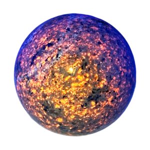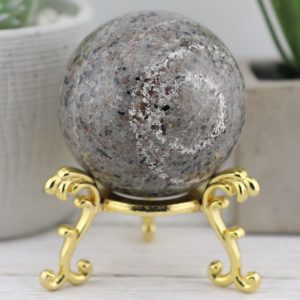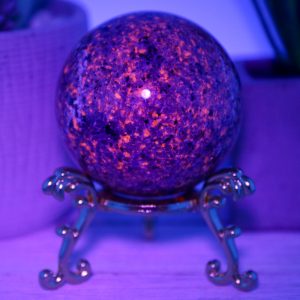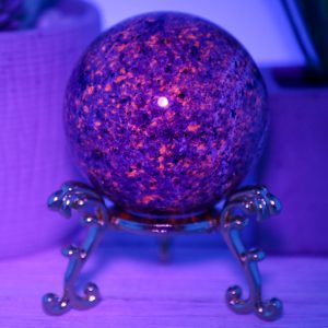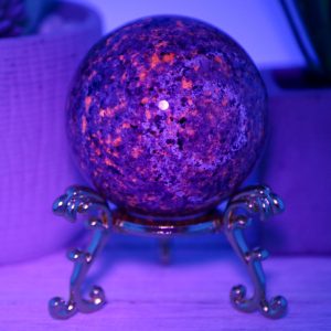 The Yooperlite sphere is made from natural emberlite that has been hand-selected for its high quality and beauty. This gemstone is UV reactive, which glows under blacklight, adding extra excitement to this piece.