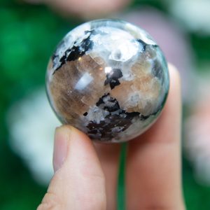• Shimmering Aventurescence: True to its name, this sunstone displays the signature aventurescence—tiny reflective inclusions that create a glowing, glitter-like effect beneath its surface. The contrast between light and shadow makes each sphere uniquely mesmerizing.