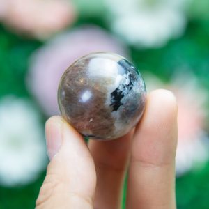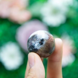 Shimmering Aventurescence: True to its name, this sunstone displays the signature aventurescence—tiny reflective inclusions that create a glowing, glitter-like effect beneath its surface. The contrast between light and shadow makes each sphere uniquely mesmerizing.