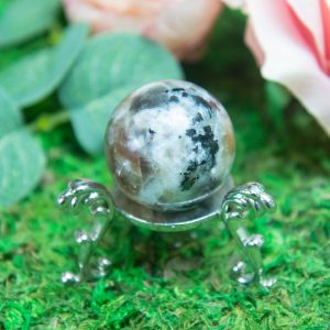 Versatile Display: Whether placed on a shelf, stand, or in your crystal grid, the Nightshade Sunstone Sphere commands attention and inspires awe. Its rich, dark color palette complements both minimalist and mystical decor styles.