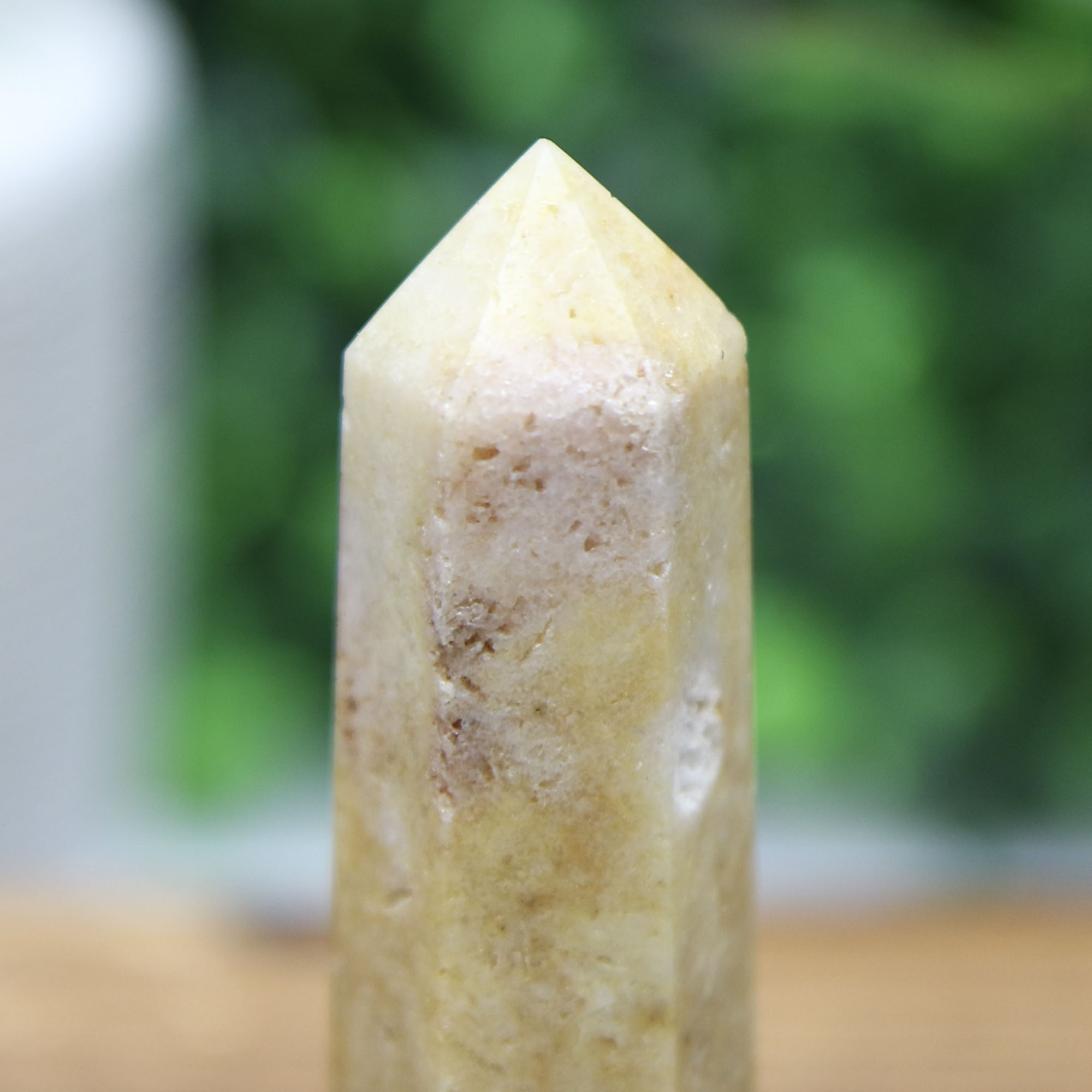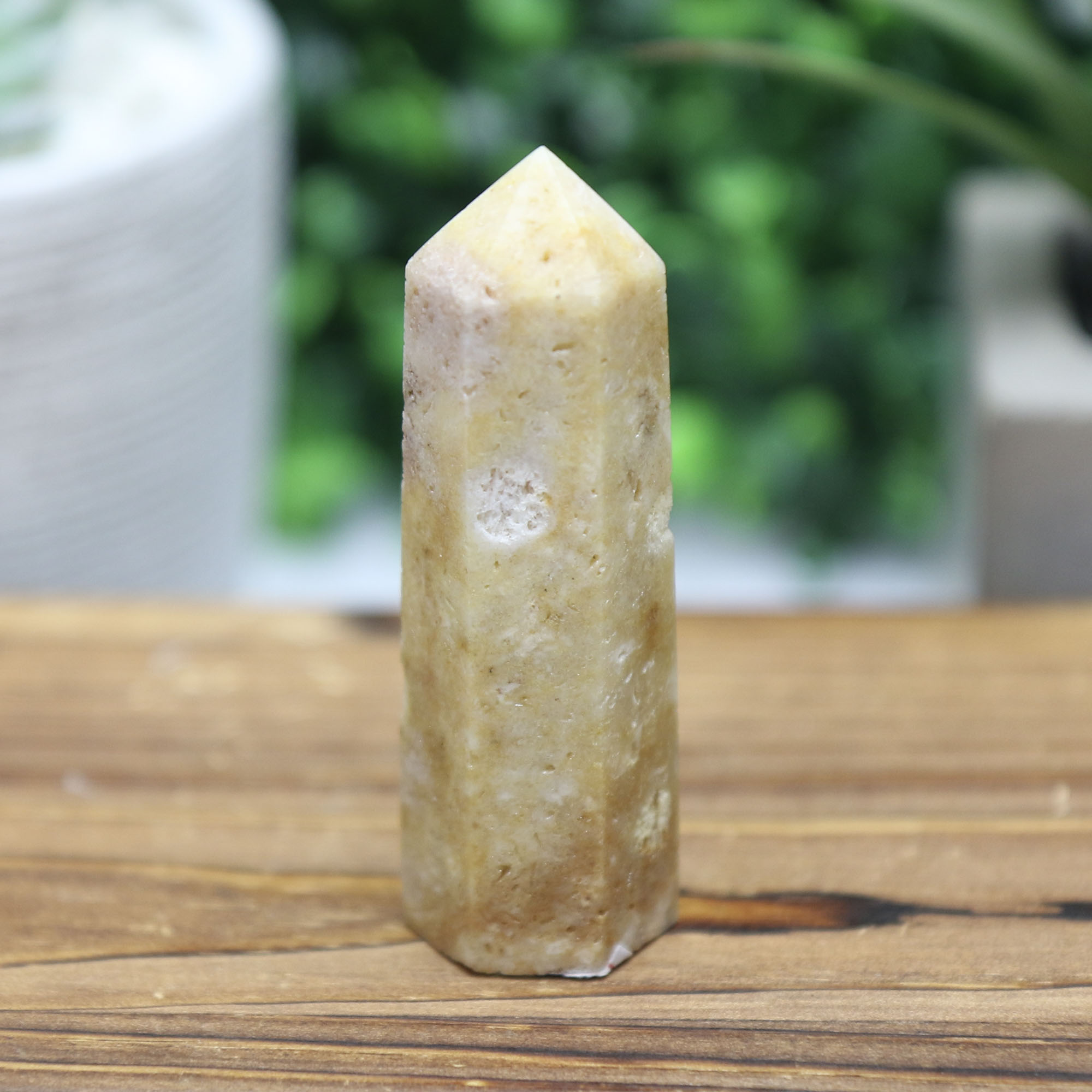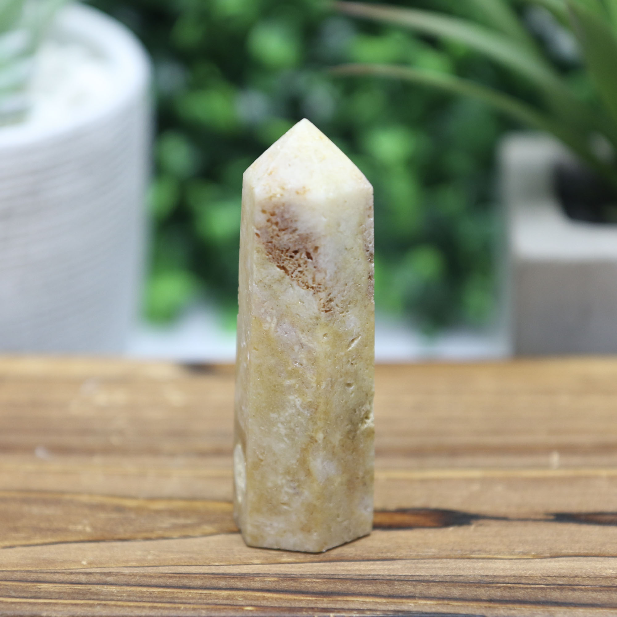 Bring soft, calming energy into your space with this beautiful Pink Amethyst Tower, a naturally elegant crystal point featuring gentle blush and warm champagne hues. Sourced from Brazil, this piece highlights the subtle beauty of pink amethyst in a clean, minimalist tower form.
