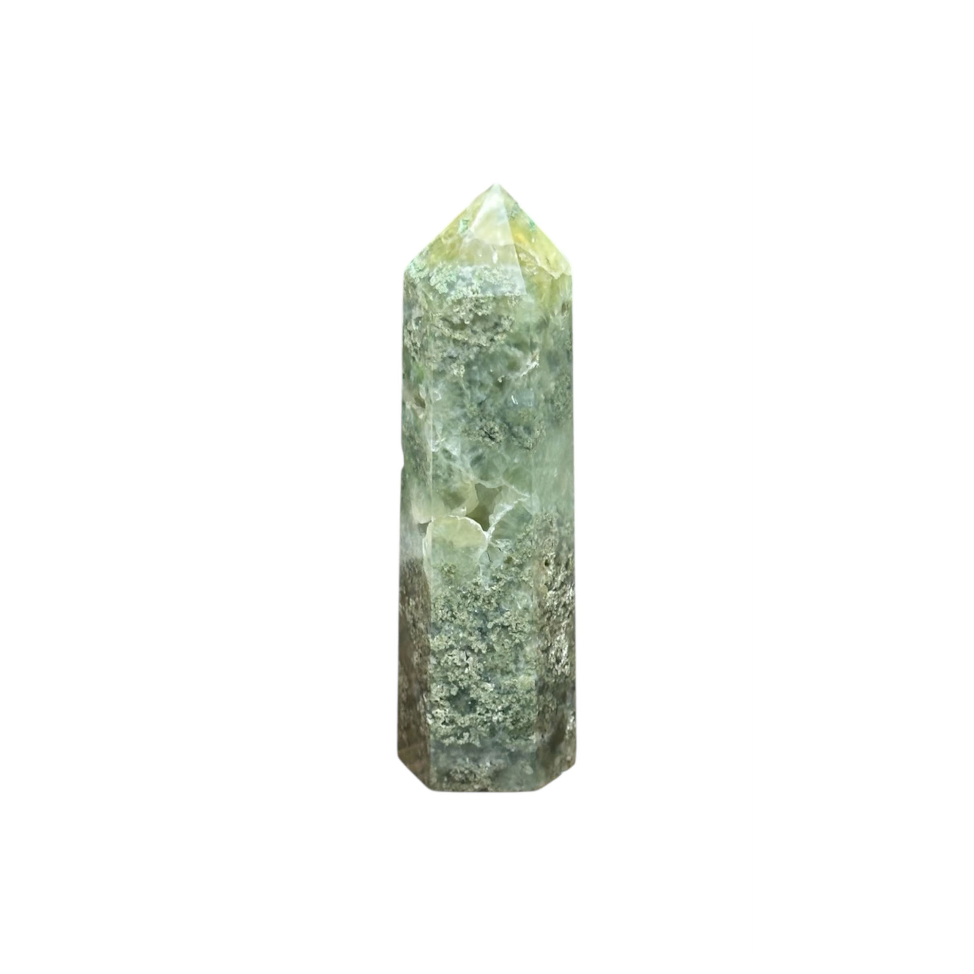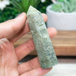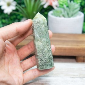 Versatile Decor: This Prehnite Epidote Point Tower adds serene energy and earthy elegance to any space. Whether displayed in your home, healing studio, or sacred space, its presence brings harmony and a sense of calm clarity.