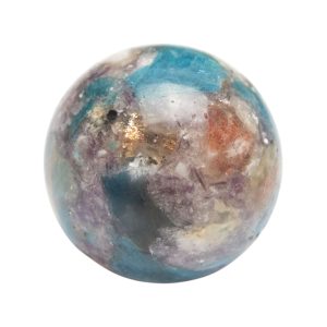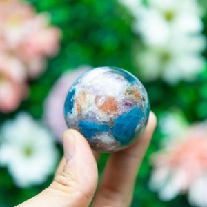 Magical Composition: This one-of-a-kind sphere is a vibrant fusion of shimmering Purple Mica (often associated with Lepidolite), vivid Blue Apatite, and sparkling Ashura Sunstone. Together, these minerals create a galactic visual effect with an energetic synergy that’s equally powerful.